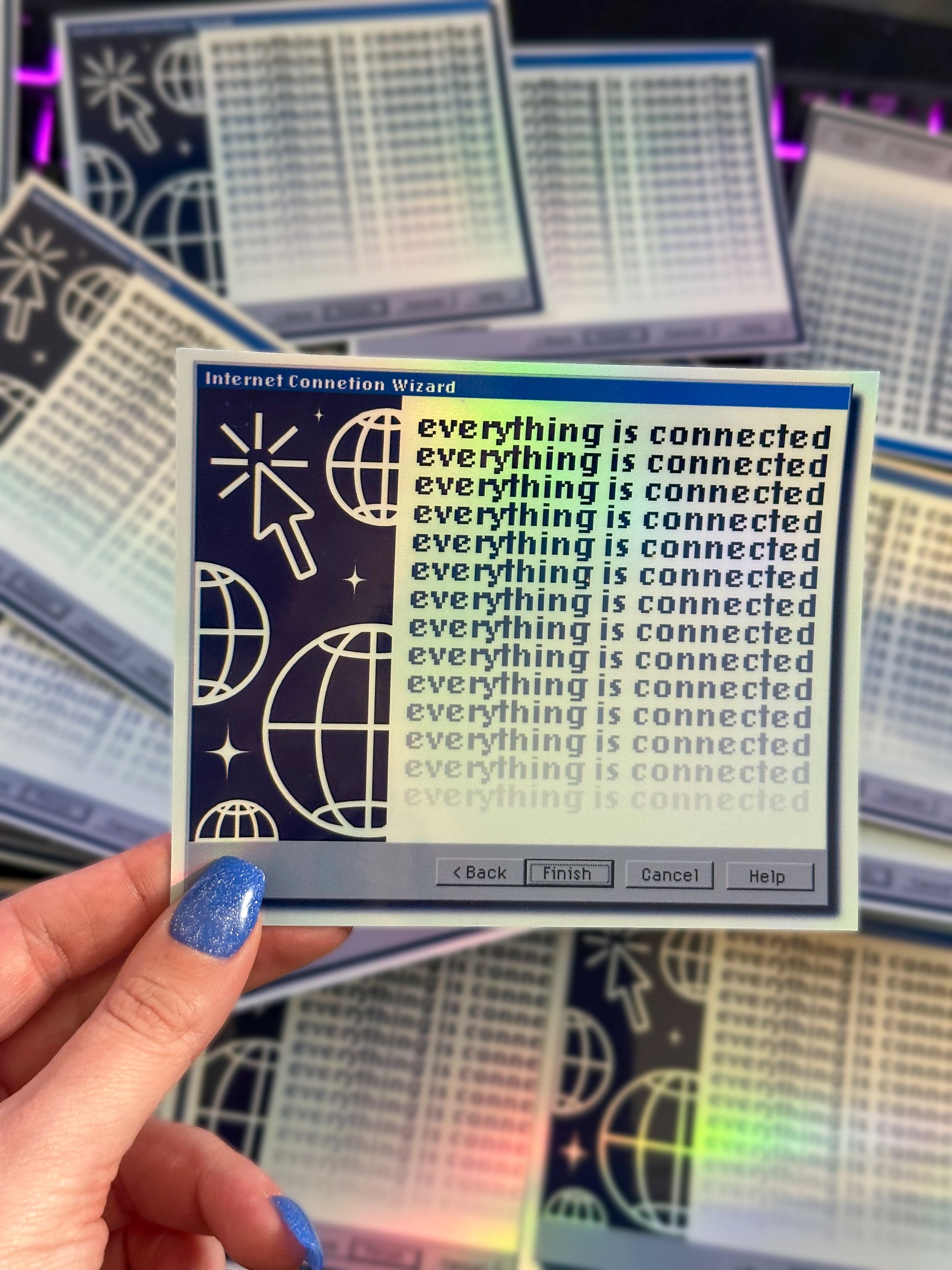 Everything is Connected | 90s Retro Computer Error Sticker | Y2K Holographic Vinyl Sticker