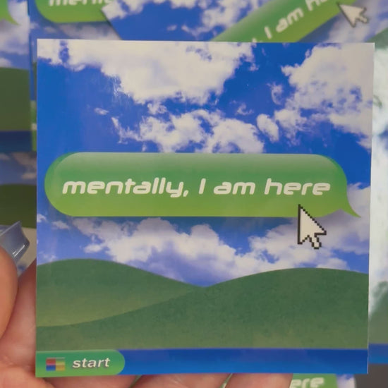 Mentally, I Am Here | Retro Computer Style Vinyl 3x3 Sticker | Y2K Aesthetic Laptop Decal | Frutiger Aero